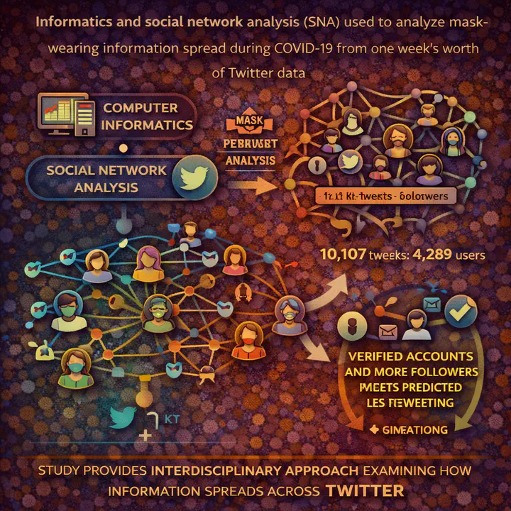 Purpose: This study uses a combined computer informatics and social network analysis (SNA) approach to analyze information spread about mask-wearing as a personal mitigation effort during the COVID-19 pandemic.